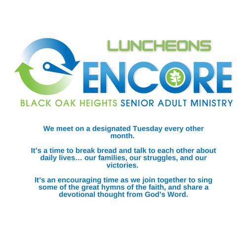 Calling for a repeat or additional performance by an audience seeking more from the performer is called an Encore. We as Christians have an audience of ONE; our God, our Lord and Savior, Jesus Christ. As Senior Adults we believe that our lives can still touch others; that we can still make a difference.